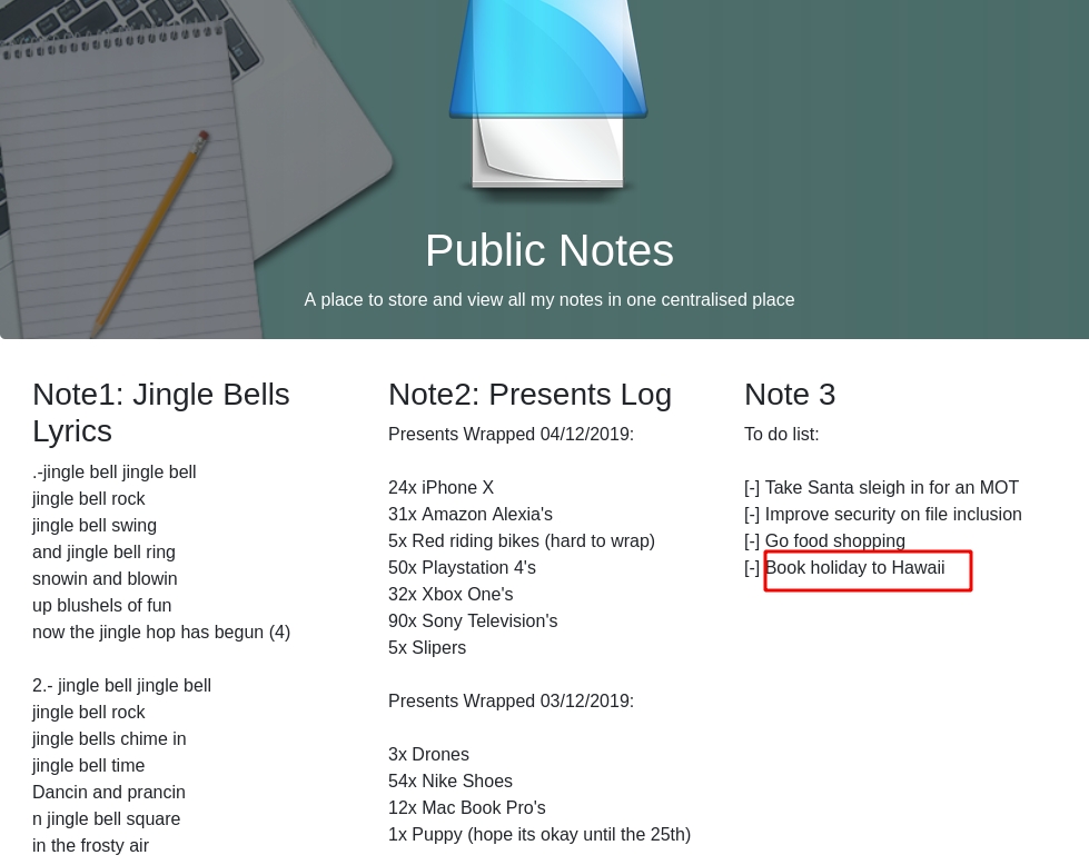 Santa’s been inundated with Facebook messages containing Christmas wishlists, so Elf Jr. has taken an online course in developing a North Pole-exclusive social network, LapLANd! Unfortunately, he had to cut a few corners on security to complete the site in time for Christmas and now there are rumors spreading through the workshop about Santa! Can you gain access to LapLANd and find out the truth once and for all?